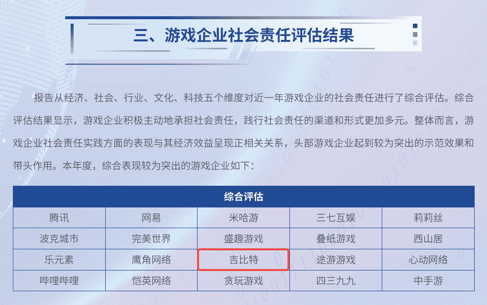 7月3日,,由中国音像与数字出版协会指导,,,,北京市西城区人民政府主办的“2024游戏责任论坛”在北京举行。。。。论坛上,,人民网舆情数据中心、、、、人民灵境研究院、、、、灵境 · 游戏实验室联合发布了《2023-2024游戏企业社会责任报告》(以下简称“《报告》”),,公布了游戏企业社会责任评估结果。。。厦门一竞技网络技术股份有限公司(以下简称“一竞技”或“公司”)获评“2023-2024年度中国游戏企业社会责任综合表现较为突出企业”。。。。这是继2020年以来,,一竞技第五次入围人民网中国游戏企业社会责任相关荣誉榜单。。