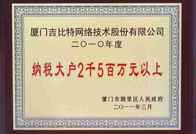 日前,,公司被厦门市湖里区人民政府授予了“2010年纳税大户”的荣誉称号,,,充分体现了公司一贯合法纳税、、、诚信经营的良好企业社会公民行为。。。